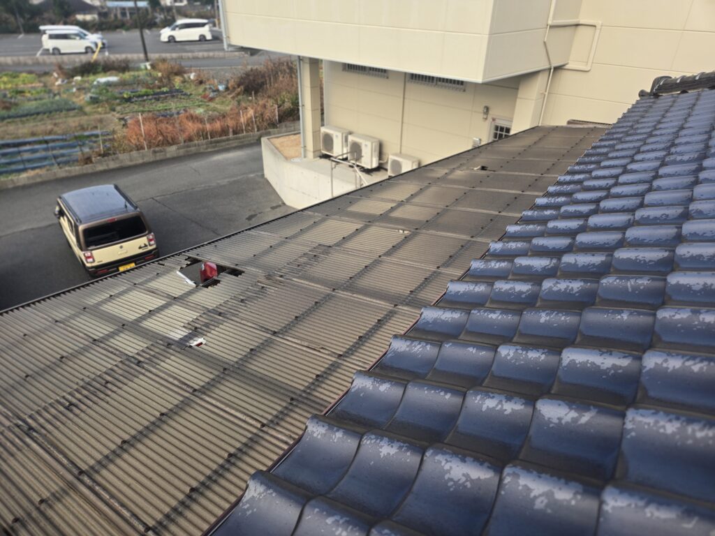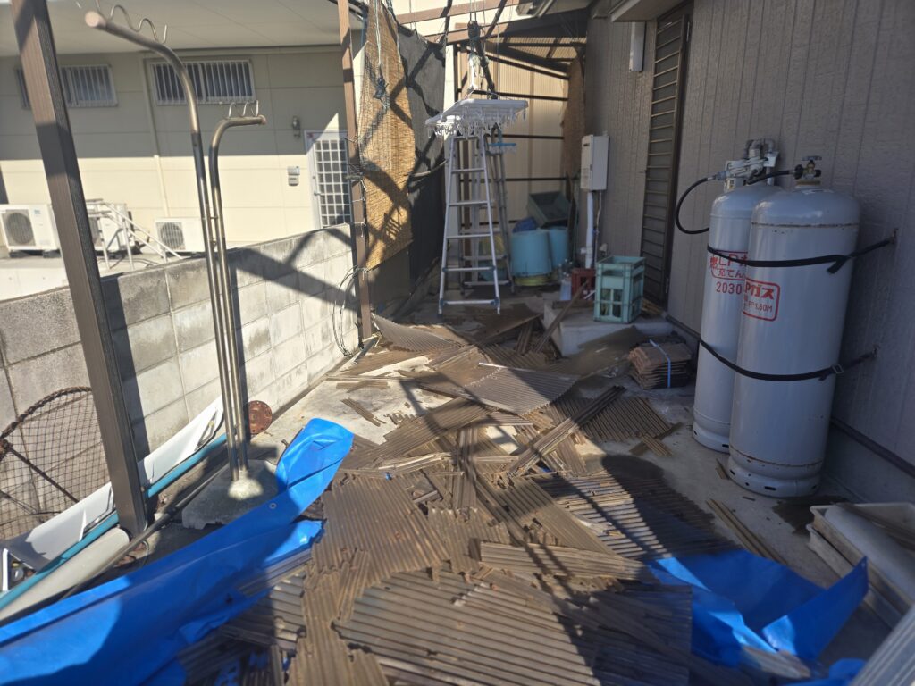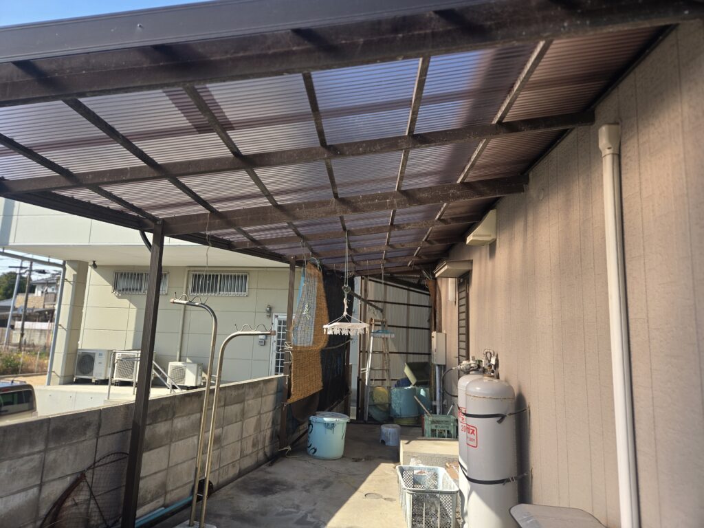ブログ施工実績 海の近くの家で 2026年2月22日 2026年2月22日 トータルホーム山口 屋根の点検中、差し掛けの波板が破損していることに気づき、 波板を張り替える事になりました 波板はボロボロで、撤去するのに時間がかかりました。 海の近くなので、風化が早いのかな?